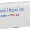 Cardace AM 2.5 Tablet is used to treat hypertension (high blood pressure). This is a combination of two medicines that controls blood pressure when a single medication is not effective. It helps to lower high blood pressure and thus reduces the chances of future heart attack and stroke.