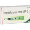 Corbis 10mg Tablet belongs to a group of medicines called beta-blockers. It is used to treat high blood pressure (hypertension), angina (heart-related chest pain), irregular heart rhythms (arrhythmia). It also helps to prevent future heart attacks and migraines.