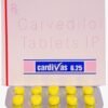 Cardivas 6.25 Tablet is a medicine used to treat high blood pressure, heart-related chest pain (angina), and heart failure. It works by relaxing the blood vessels, so blood can flow more easily to the heart. Lowering blood pressure also helps prevent future heart attacks and stroke.