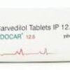 Edocar 12.5mg Tablet is a medicine used to treat high blood pressure, heart-related chest pain (angina), and heart failure. It works by relaxing the blood vessels, so blood can flow more easily to the heart. Lowering blood pressure also helps prevent future heart attacks and stroke.