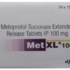 Met XL 100 Tablet belongs to a group of medicines called beta-blockers. It is used to treat high blood pressure (hypertension), angina (heart-related chest pain), and irregular heart rhythms (arrhythmia). It also helps to prevent migraines, future heart attacks, and stroke.