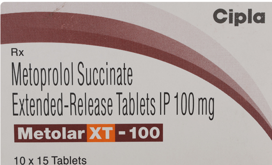 Metolar XT 100 Tablet belongs to a group of medicines called beta-blockers. It is used to treat high blood pressure (hypertension), angina (heart-related chest pain), and irregular heart rhythms (arrhythmia). It also helps to prevent migraines, future heart attacks, and stroke.