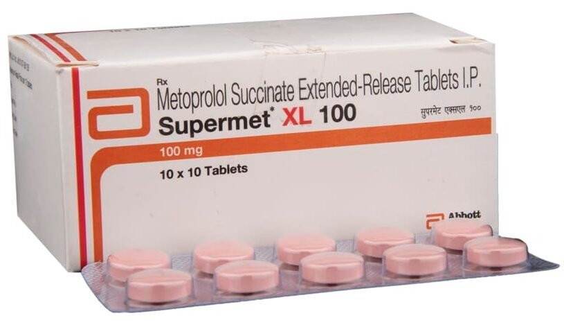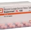 Supermet XL 100 Tablet belongs to a group of medicines called beta-blockers. It is used to treat high blood pressure (hypertension), angina (heart-related chest pain), and irregular heart rhythms (arrhythmia). It also helps to prevent migraines, future heart attacks, and stroke.