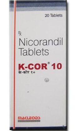 K-Cor 10 Tablet is a medicine used to prevent and treat heart-related chest pain (angina). It is usually prescribed when other heart medicines are either not suitable or have not worked. It reduces the risk of an angina attack by widening blood vessels and improving blood flow to the heart.